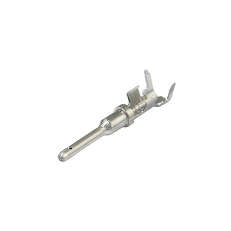 Receptacle pin contacts complete the electrical connection of the DEUTSCH DT Series receptacle housing assembly. There are three different types of contacts available. Nickel-plated stamped & formed, nickel-plated solid barrel, or gold-plated solid barrel.