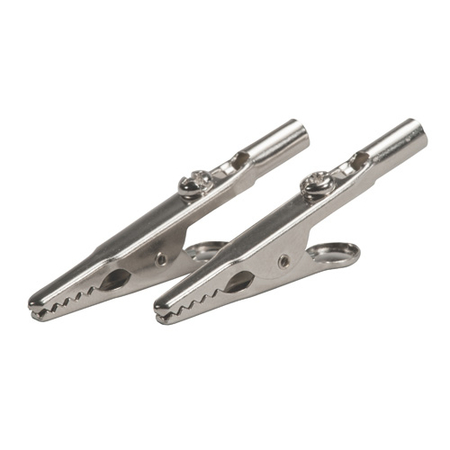 These steel electrical alligator clips or alligator clamps can be used for home, auto, or work shop applications. Alligator clips are rated up to 10 amps, and are perfect as battery alligator clamps for charging small vehicle batteries or for making jumper and text wires. Available in bulk packages or standard pairs.